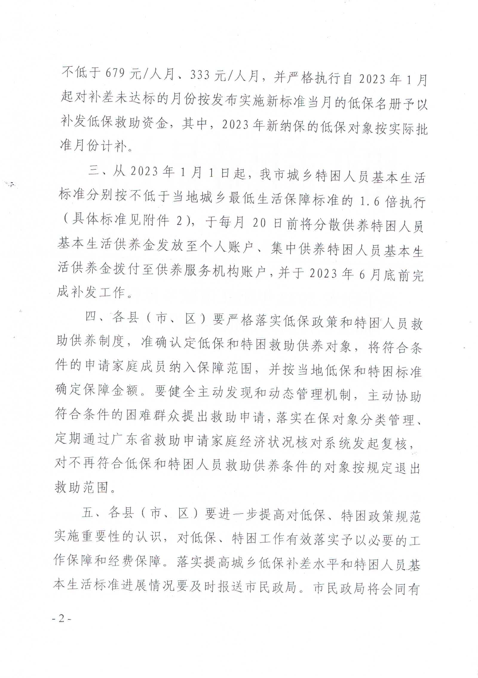 關于印發2023年陽江市城鄉低保最低標準及特困人員供養標準的通知