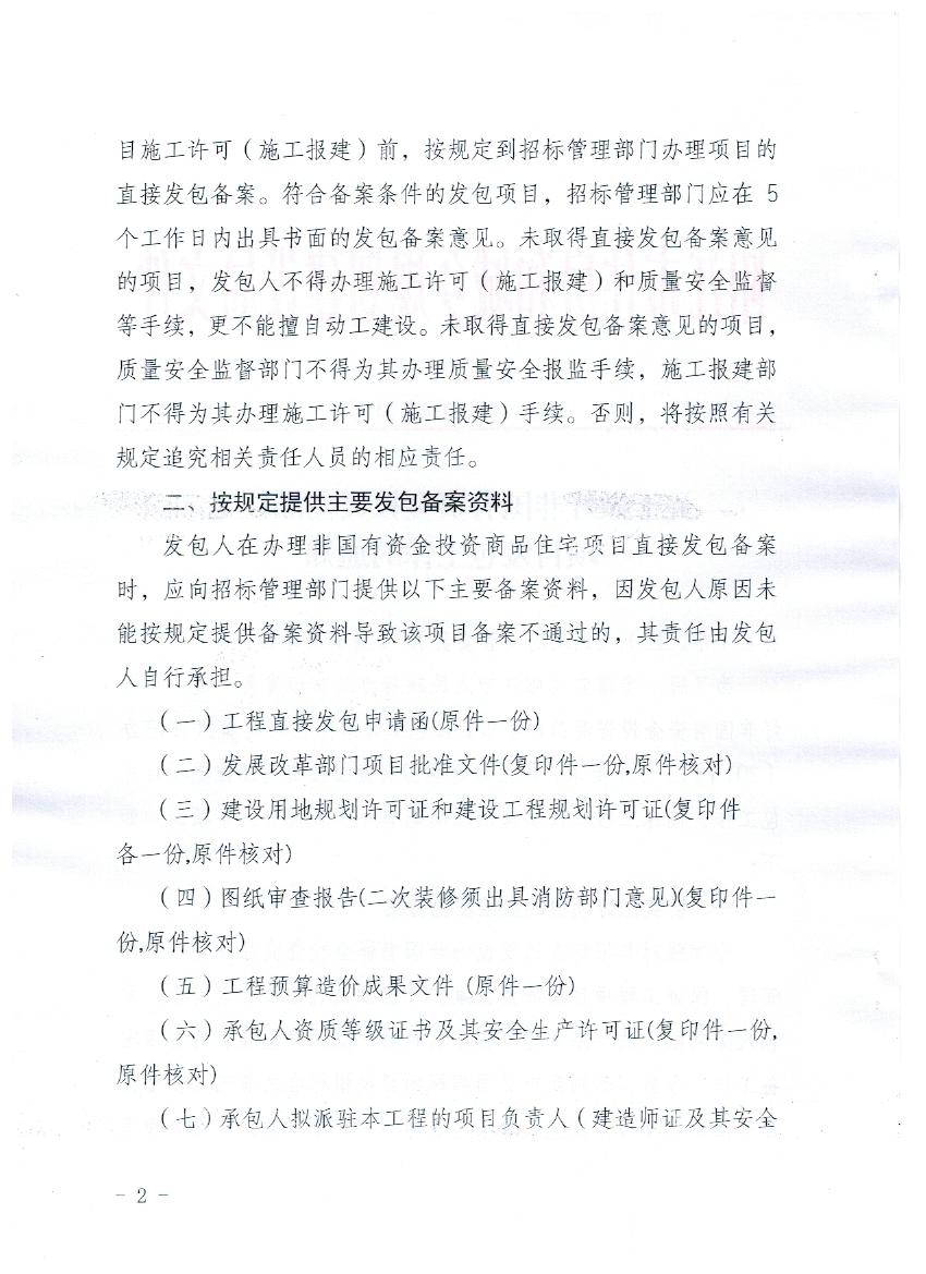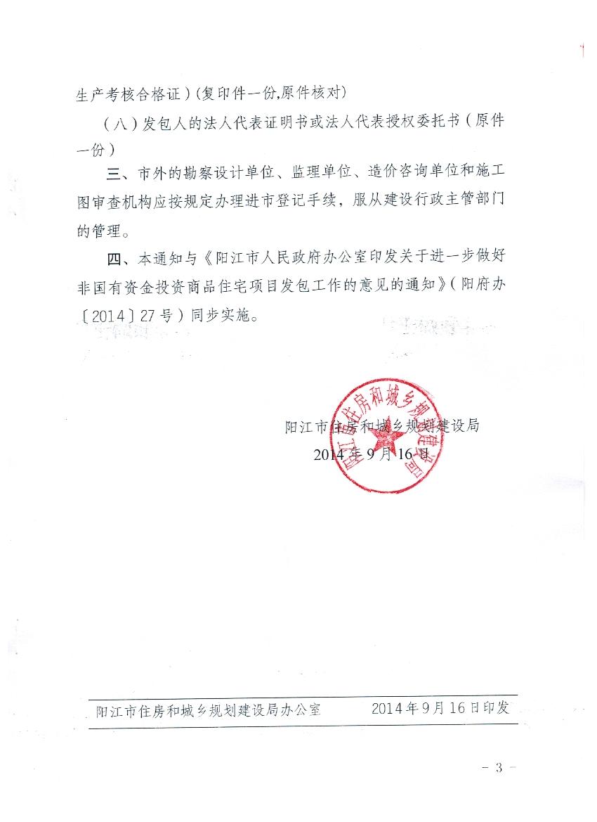 關于做好非國有資金投資商品住宅項目發包工作的通知(陽住建【2014】31號)