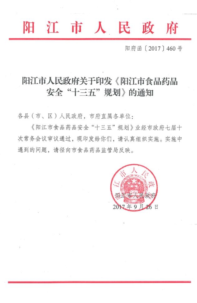 陽江市人民政府關于印發《陽江市食品藥品安全“十三五”規劃》的通知.pdf