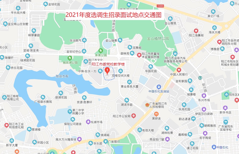 陽(yáng)江市考點(diǎn)的面試地點(diǎn)設(shè)在陽(yáng)江市委黨校教學(xué)樓,地址:廣東省陽(yáng)江市江城區(qū)體育路98號(hào)。交通圖見(jiàn)附件2。